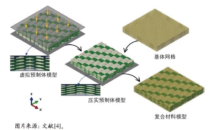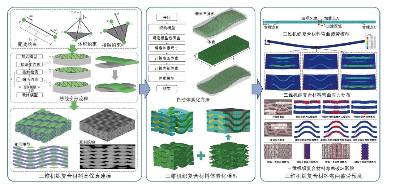 三维纺织复合材料的构效分析是揭示其“材料-结构-性能”关联规律的关键手段,通过表征细观结构的几何拓扑与工艺缺陷,精准预测其力学响应与多尺度损伤演化机制,建立材料“微细观结构-宏观性能”的定量映射关系,从而突破传统经验设计瓶颈,推动复合材料从“试错式”研发向“预测驱动式”设计的转变。常用的构效分析模型有纤维嵌入模型、体素化模型及多尺度分析模型等。