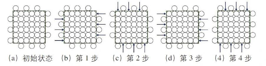 行列式三维编织机的运动由底板上沿行和列两个正交方向的轨迹来实现,常用的方法有四步法和二步法编织。四步法通过携纱器沿行、列方向依次移动 4 个步骤完成 1 个循环,其预制体具有整体结构好、异形件自由度高等结构优势。三维编织机底盘是实现“四步法”编织工艺,完成纤维束在空间内交织的重要装置之一。编织底盘上载纱装置运动的灵活性和可控性直接影响着底盘能够编织的预制件的形状,编织底盘上载纱组件的可控性越高,编织设备对织物内部结构和编织形状的控制和适应能力也就越强。在这一技术演进过程中,贺辛亥等研发的底盘驱动装置解决了现有的底盘驱动装置复杂且编织式样单一的问题。另外,周浩等提出了一种基于主动加减纱的自动化工艺,利用紫外固化胶黏剂实现碳纤维束的自动黏结与切割,为变截面三维编织的智能化、自动化生产和复杂结构设计提供了新思路和理论基础。