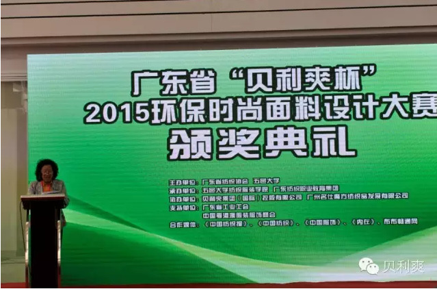 秋风送爽,丹桂飘香,在这硕果累累的金秋时节,由广东省纺织协会和五邑大学联合主办,贝利爽集团(国际)控股有限公司、名仕魔方纺织品发展有限公司协办的2015首届广东省“贝利爽杯”环保时尚面料设计大赛颁奖大会11月3日在广州国际采购中心如期举行,与“中博会——智造纺织与服装展”同期,打造了一场涵盖纺织行业的全产业链时尚盛宴。