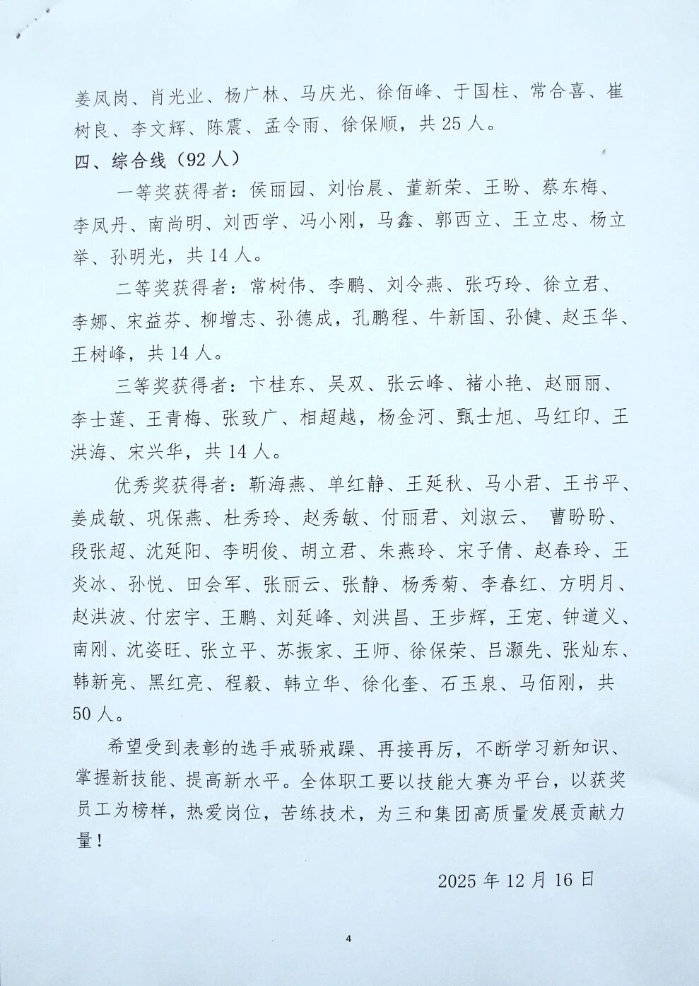 会上,对2025年公司岗位练兵暨“三和杯”职业技能竞赛的获奖人员进行了表彰。