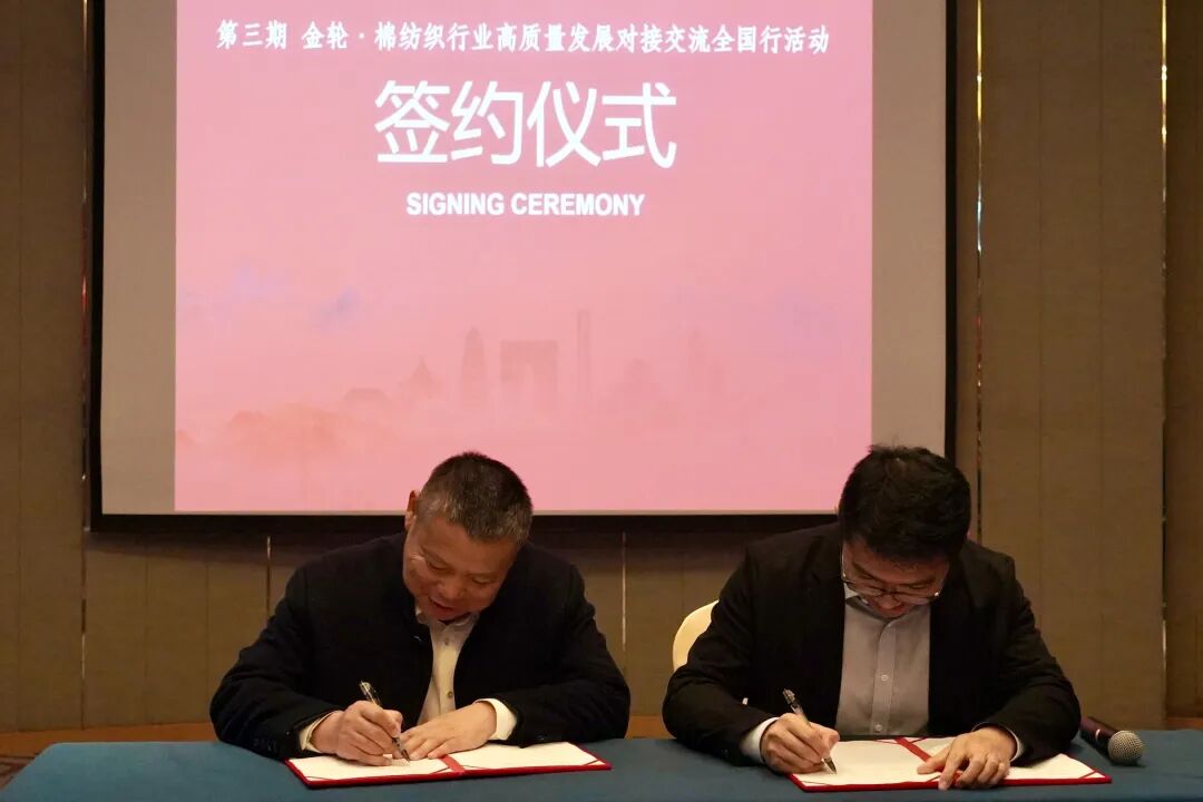 现场,中国棉纺织行业协会副会长景慎全与金轮针布(江苏)有限公司总经理黄宏兵共同签署了第三期“金轮·棉纺织行业高质量发展对接交流全国行活动”合作协议;中国棉纺织行业协会会长助理、副秘书长郭占军与金轮针布(江苏)有限公司总经理助理童卓睿共同签署了棉纺织行业运行指数研究项目合作框架协议。签约仪式的顺利举行标志棉纺织行业在数据赋能高质量发展上迈出关键一步。未来,双方将以第三期行业对接交流活动为契机,聚焦新开工率等重点数据,搭建行业运行质效指数体系,打造权威数据发布平台,助力企业决策。