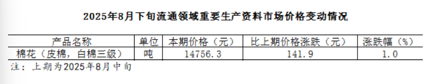 国家统计局:重要生产资料市场价格变动情况(涉棉部分)