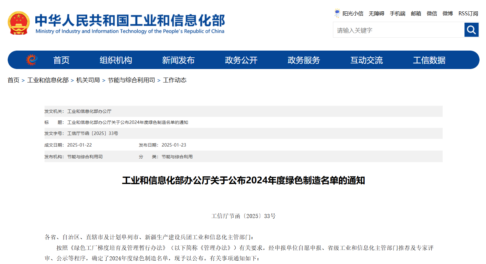 查看详情请登录工信部网站:工业和信息化部办公厅关于公布2024年度绿色制造名单的通知