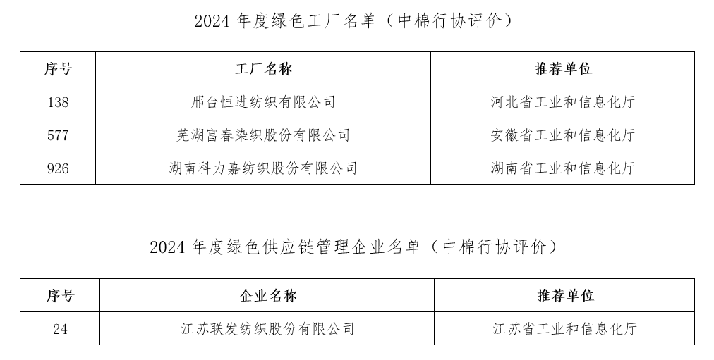 中棉行协评价企业获评国家级绿色制造企业(2024年度)