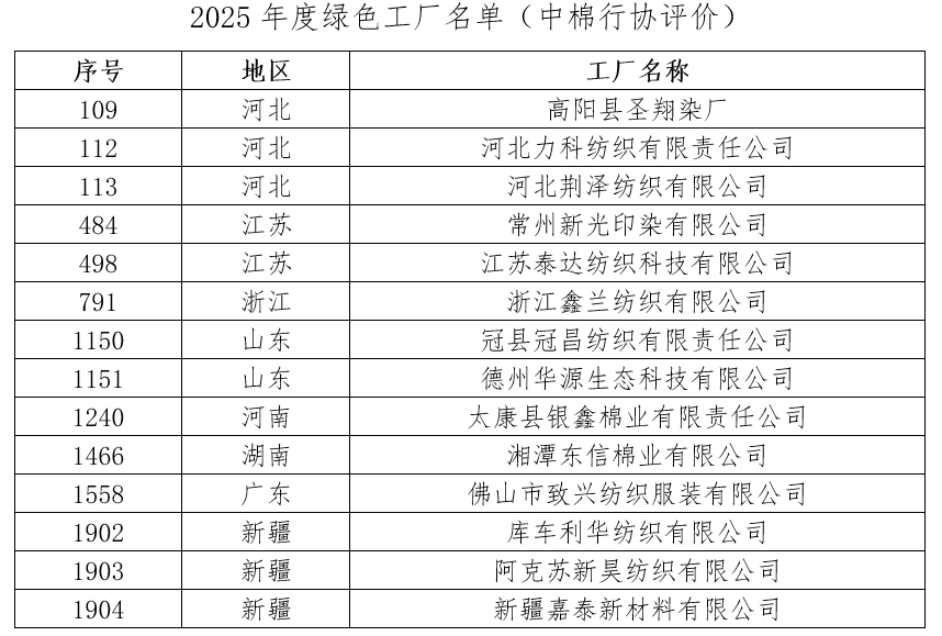 中棉行协评价企业获评国家级绿色工厂(2025年度)