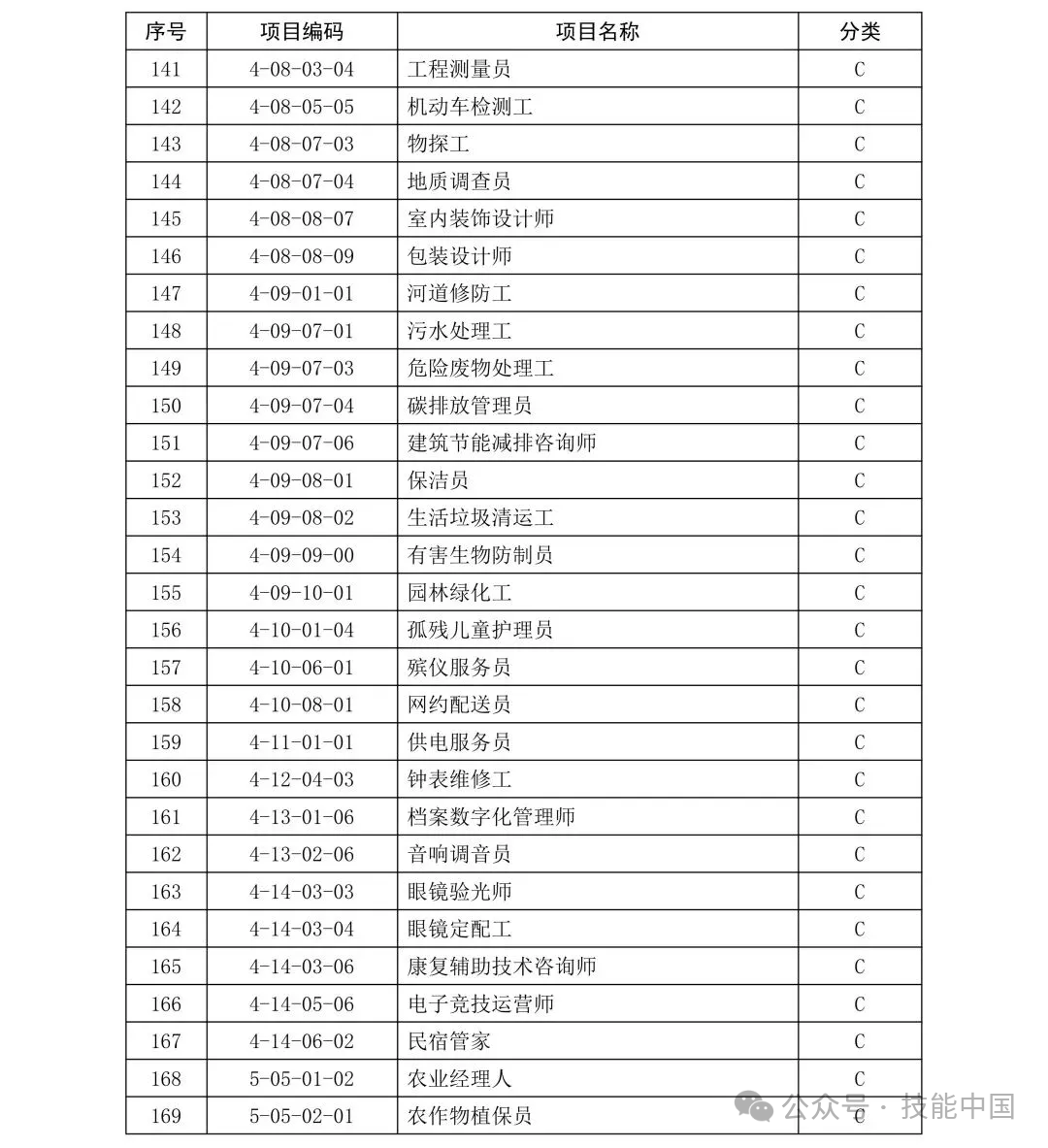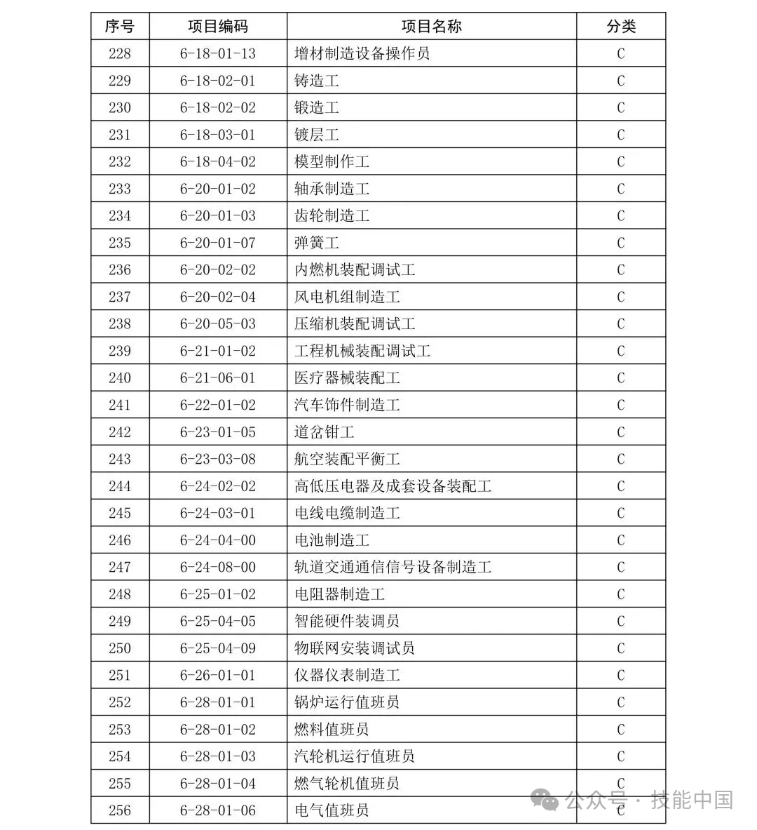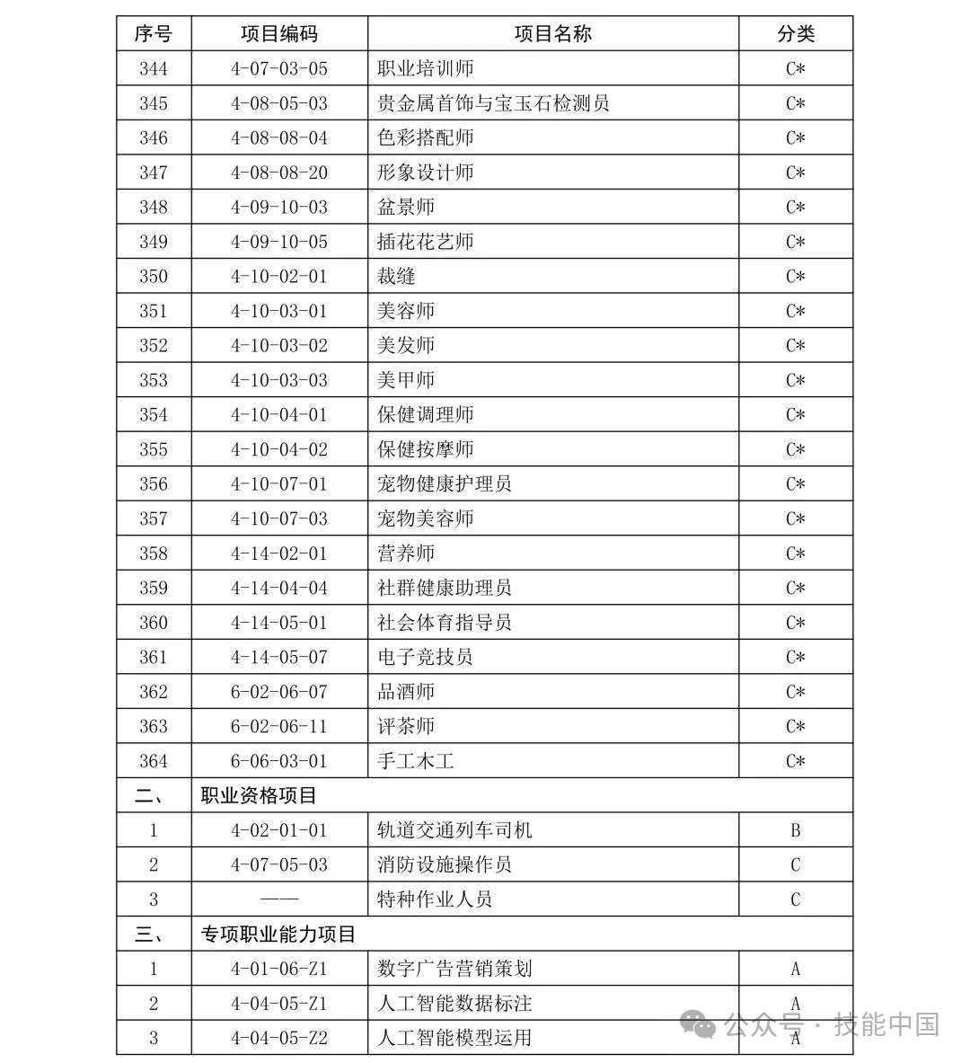 C 类项目职业技能证书补贴标准: