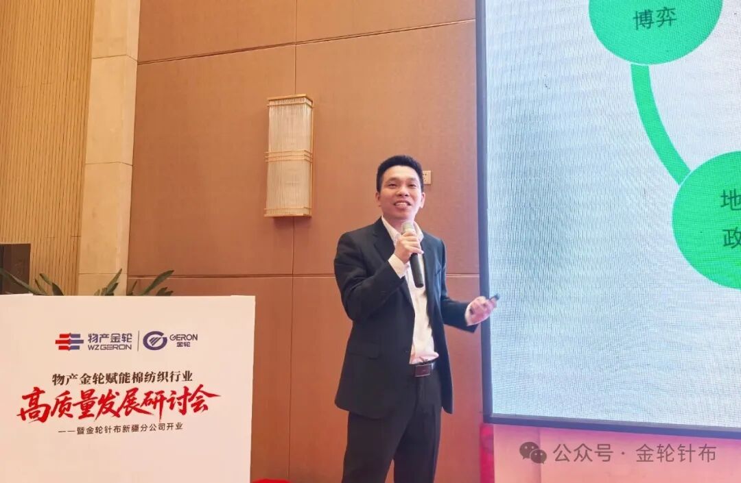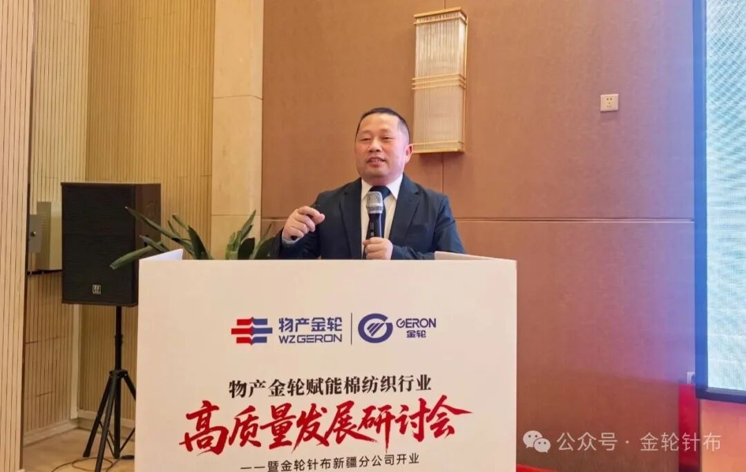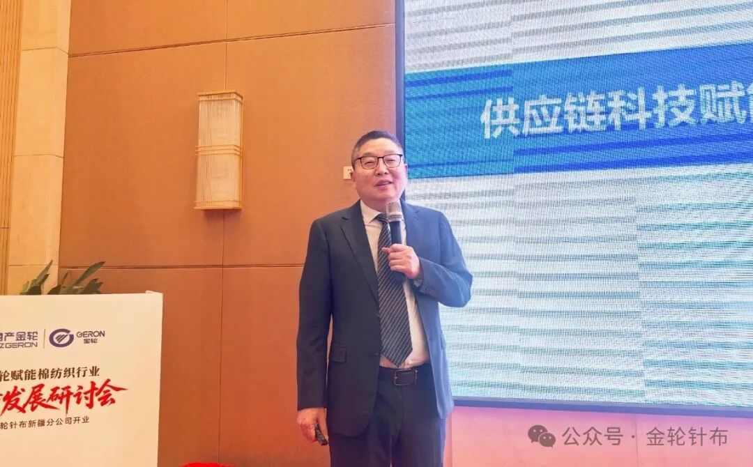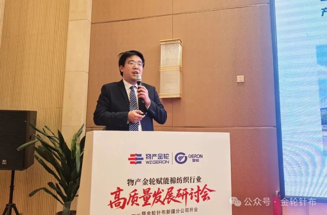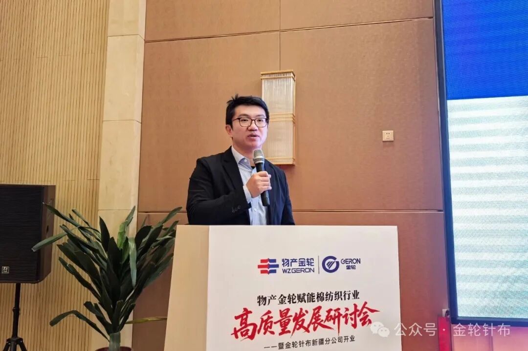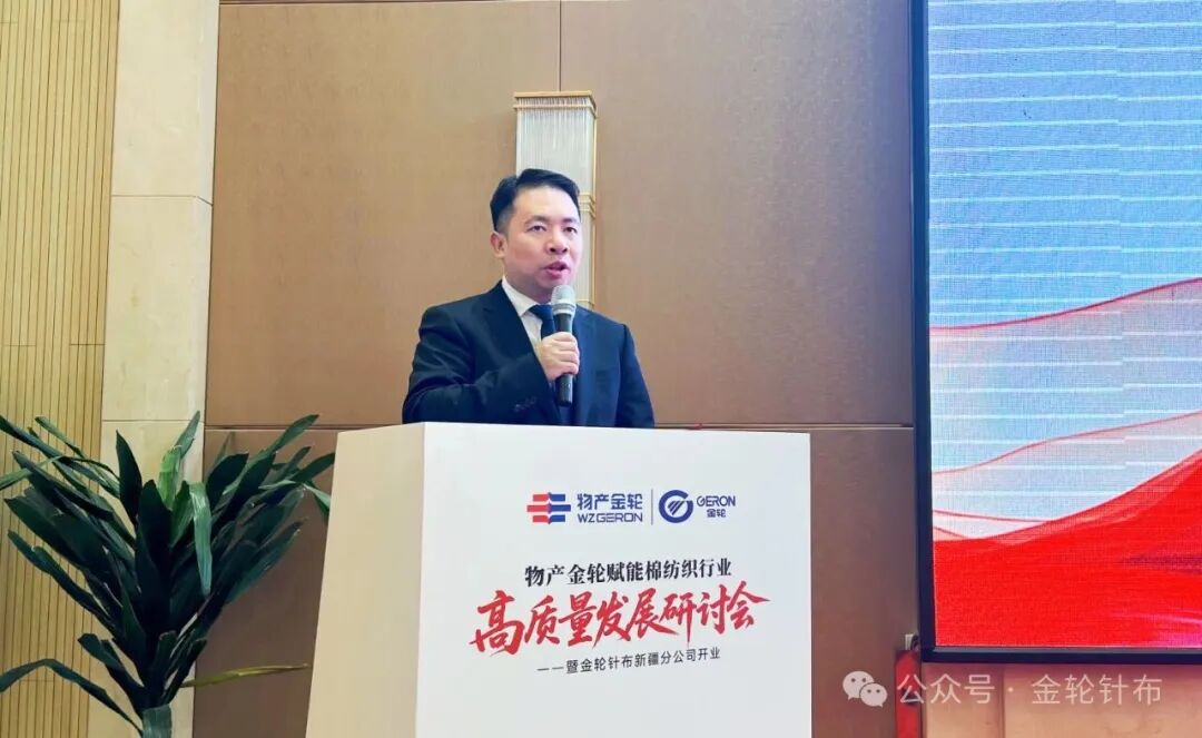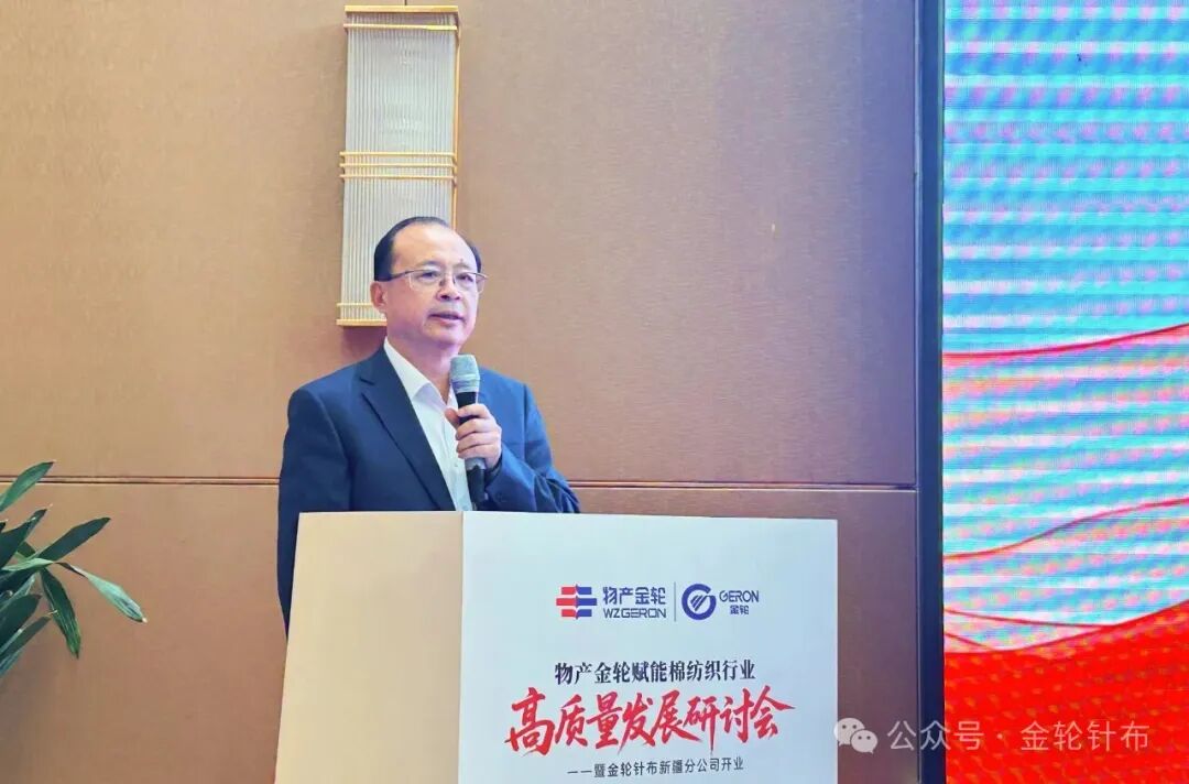 全国政协委员、新疆维吾尔自治区棉花产业发展领导小组办公室主任梁勇对金轮针布新疆分公司成立表示热烈祝贺,认为这是物产金轮深度服务棉纺织产业、助力新疆纺织高质量发展的关键布局。在《新疆纺织服装产业发展现状和展望》主题报告中,他以详实数据展现新疆纺织服装产业的跨越式发展成果,强调产业发展对稳就业、保稳定、促长治久安的重要意义。他还深入解读新疆纺织服装产业中长期发展规划,阐释以棉纺织为支柱、聚焦“智能化、绿色化、融合化”的“1224”发展新路径,让与会嘉宾对产业政策与未来前景更加清晰、更具信心。