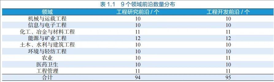 中国工程院自2017年起每年组织院士专家开展“全球工程前沿”研究,按照9个领域方向,通过数据挖掘、专家交互、研判遴选,获得90个左右工程研究前沿和90个左右工程开发前沿。研究成果按年度以中英文面向全球发布,有效发挥了学术引领、产业引导和决策参考的作用,受到了国内外社会各界的广泛关注和积极评价。