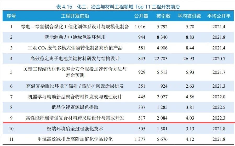 在化工、冶金与材料工程领域中,高性能纤维增强复合材料跨尺度设计与集成开发入选Top11工程开发前沿。高性能纤维增强复合材料开发旨在克服传统复合材料力学各向异性、功能单一及环境不可持续等局限,通过多尺度优化和集成工艺开发,在保持轻量化优势的同时,实现高韧性、功能化和可循环的协同突破,以满足复杂多变的应用需求。凭借其在航空航天、交通运输和民用工业等领域的广泛应用,高性能纤维增强复合材料已成为推动现代工业与科技发展的核心动力之一。