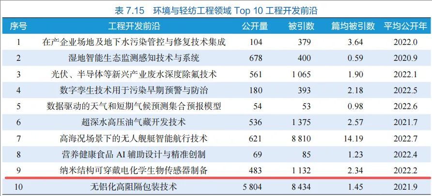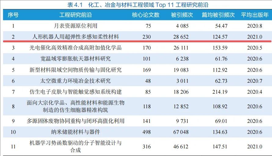 此外,纳米结构可穿戴电化学生物传感器制备入选环境与轻纺工程领域Top10工程开发前沿,与智能纺织品形成技术配套;人形机器人用超弹性多感知柔性材料入选化工、冶金与材料工程领域Top11工程研究前沿,凸显了纺织材料在机器人等领域的战略价值。