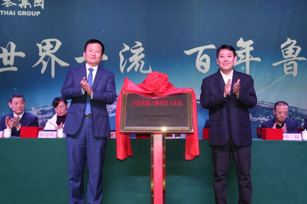 会上,陈志林主任、刘子斌董事长共同为鲁泰集团齐鲁技能大师特色工作站揭牌。孙权局长宣读《山东省人力资源和社会保障厅关于公布2025年度齐鲁技能大师特色工作站项目建设单位的通知》。
