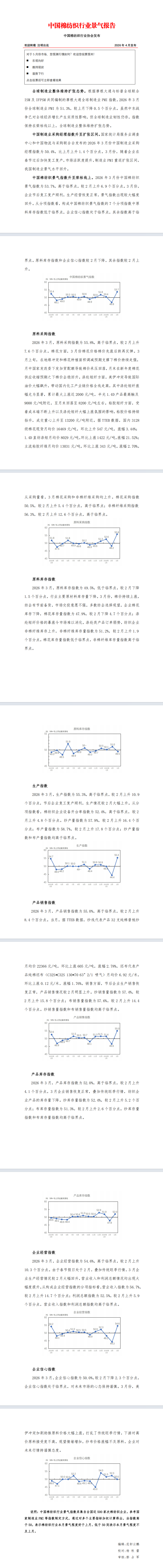 2026年3月中国棉纺织行业景气报告