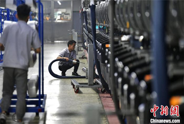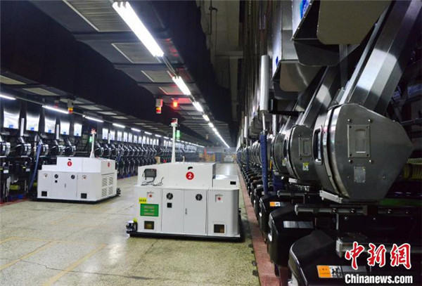 5月31日,福州市长乐区一家化纤纺织企业智能车间,传统纺织“千人纱、万人布”的场景不再。 张斌 摄