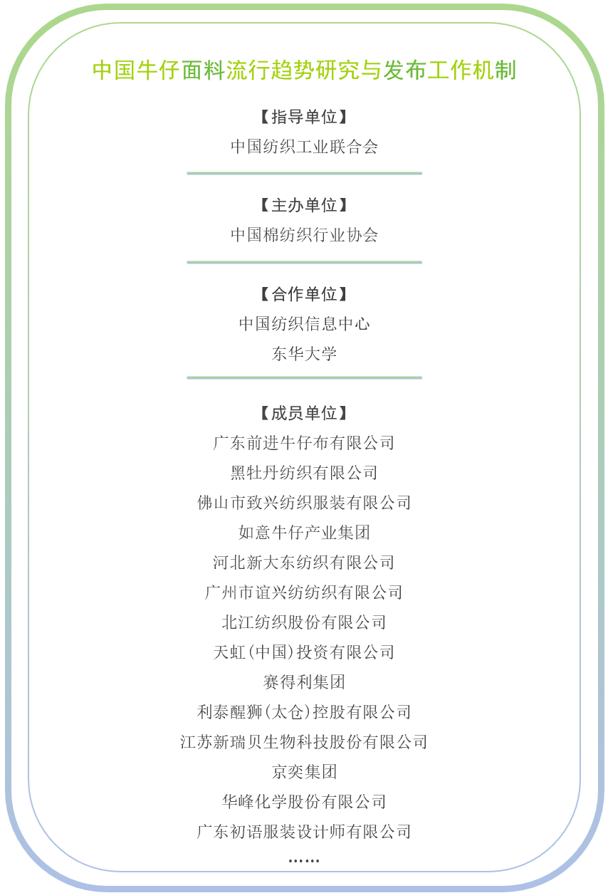 2027春夏中国牛仔面料流行趋势由中国棉纺织行业协会携手中国纺织信息中心,联合东华大学及14家国内头部牛仔面料产业链上下游企业共同发布。