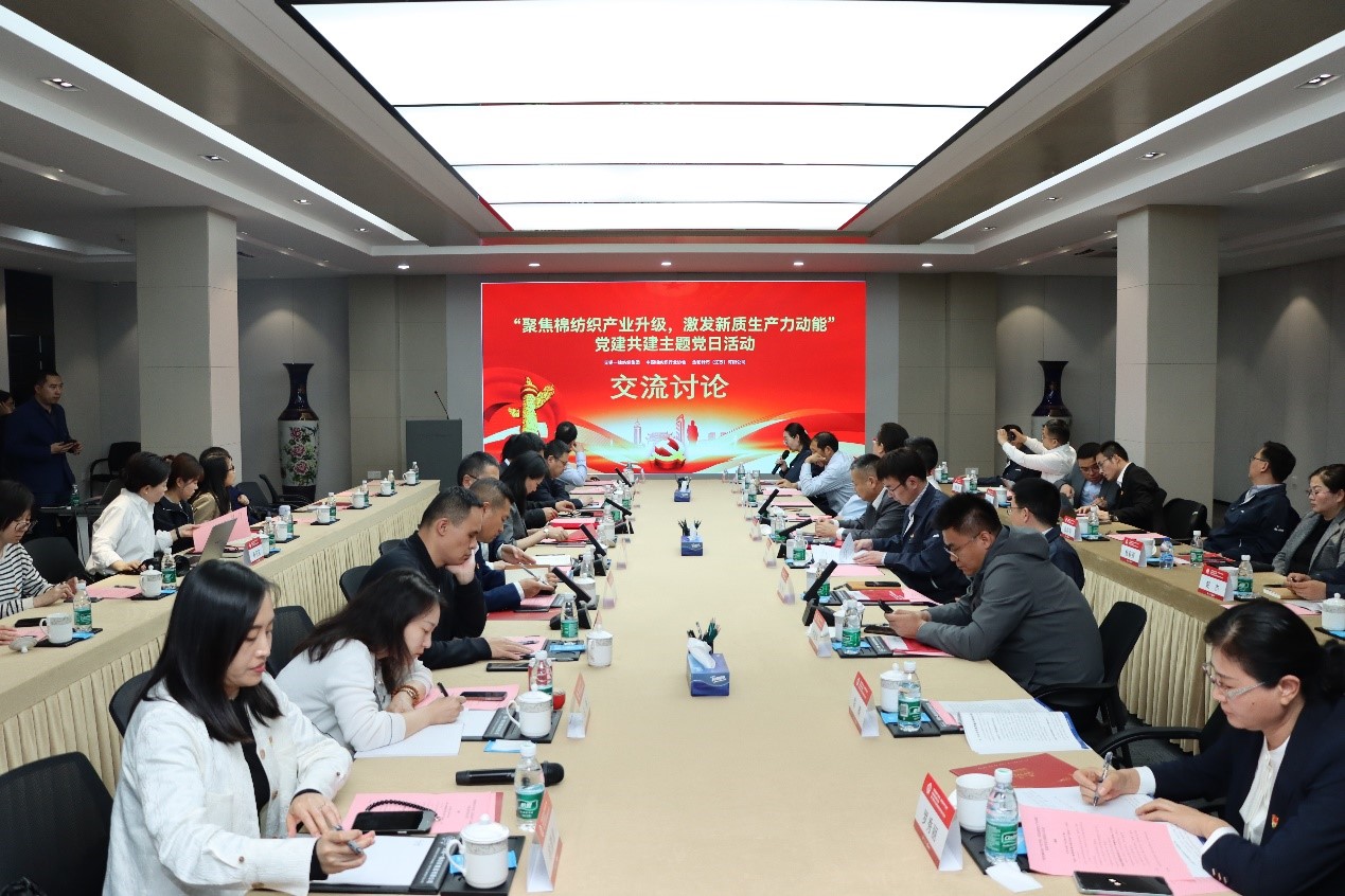 在党建学习交流环节,中棉行协党支部书记董奎勇以《纺织工业加快培育新质生产力解读》为题讲党课,为大家详细介绍了中国棉纺织行业运行情况,深刻解读了培育纺织工业新质生产力的内涵,交流分享了中国棉纺织行业发展趋势。